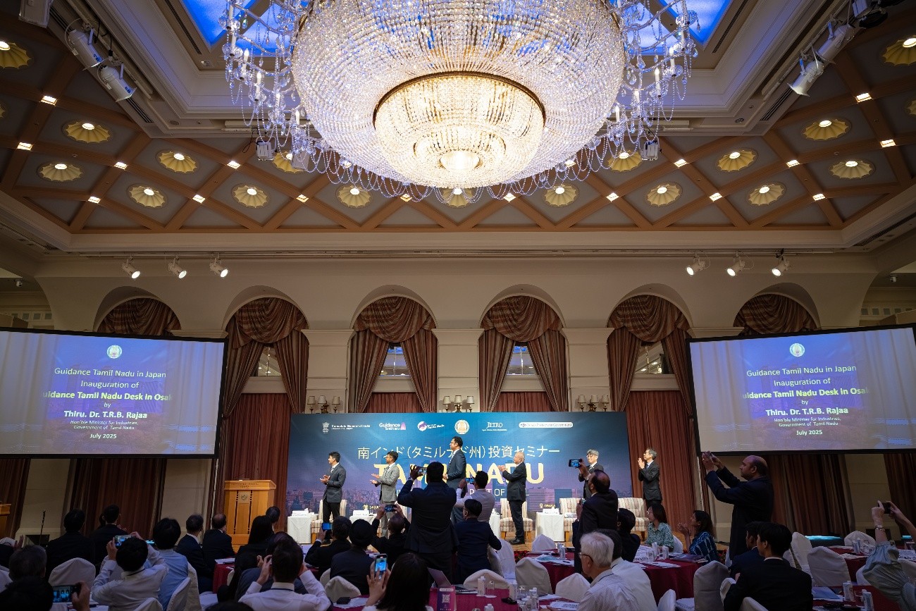 TN州は同州と日本との経済的、人的なつながりをさらに強固にし、相互補完関係を構築するために、大阪府の協力を受け日本事務所の開設を決定し、2025年7月14日に大阪府と共催した「TN州投資セミナー」においてT・R・B・ラジャア州工業相がその開所を宣言しました。