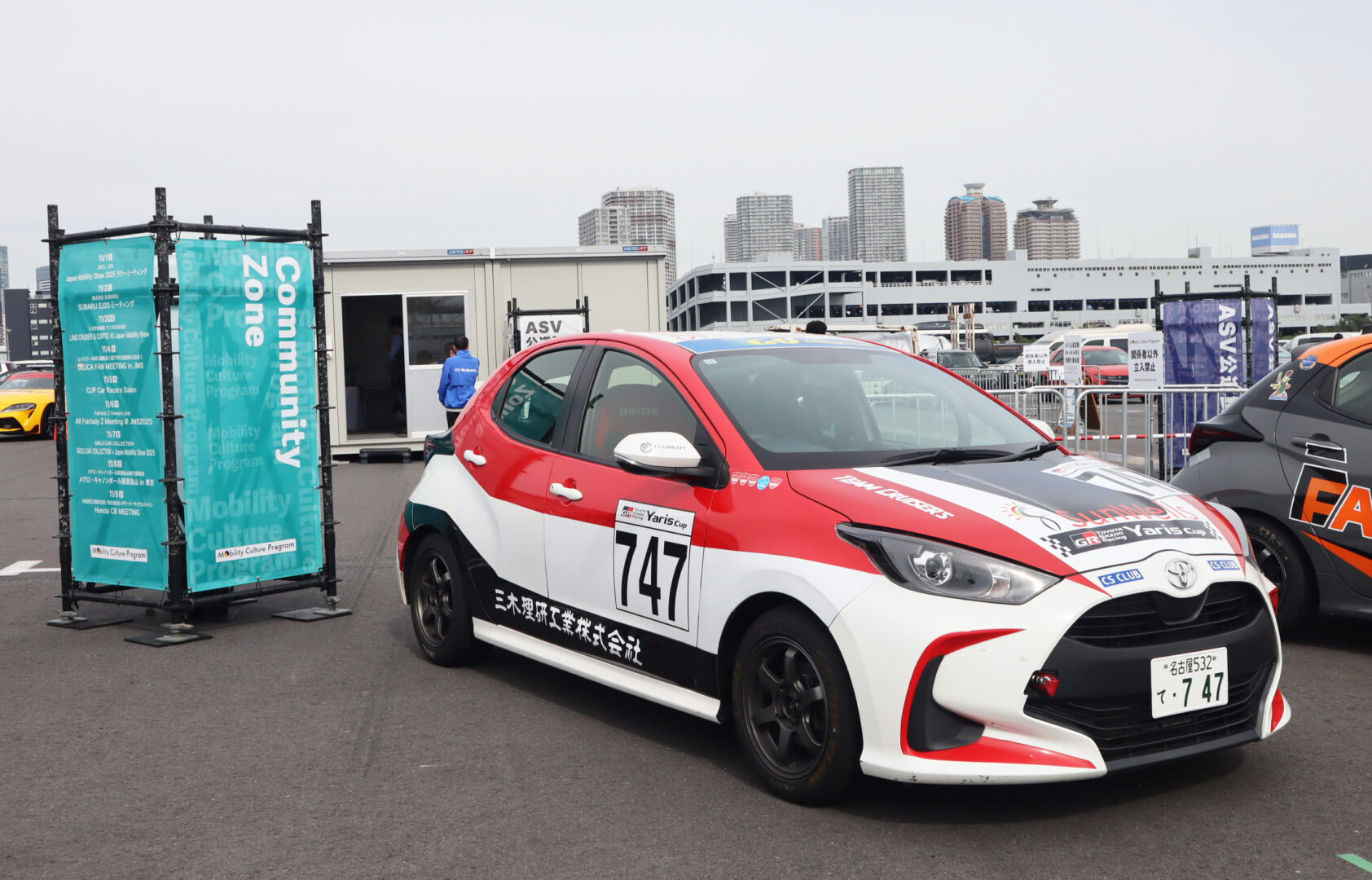 2025年11月5日(水)、東京ビッグサイトで開催された「Japan Mobility Show 2025」の「Cup Car Racers Salon」にて、当社が協賛する『サンウェル747Yaris』号を展示いたしました。