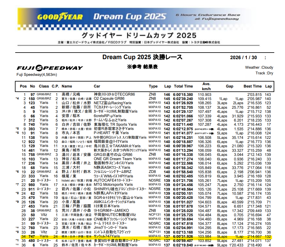 このたび、Good Year Dream Cup 2025 にて開催されたレースへ参加いたしましたので、ご報告いたします。